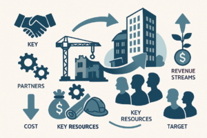 涵蓋價值主張、目標客群、關鍵活動、資源、合作夥伴、成本結構與收益來源,幫助投資人打造完整運營架構。