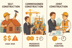 自地自建:地主全額出資,自享全部利潤,但需專業知識且耗時長。