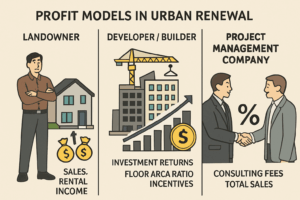 地主:透過權利分屋、拆遷補償、自地自建獲得銷售與出租收益。